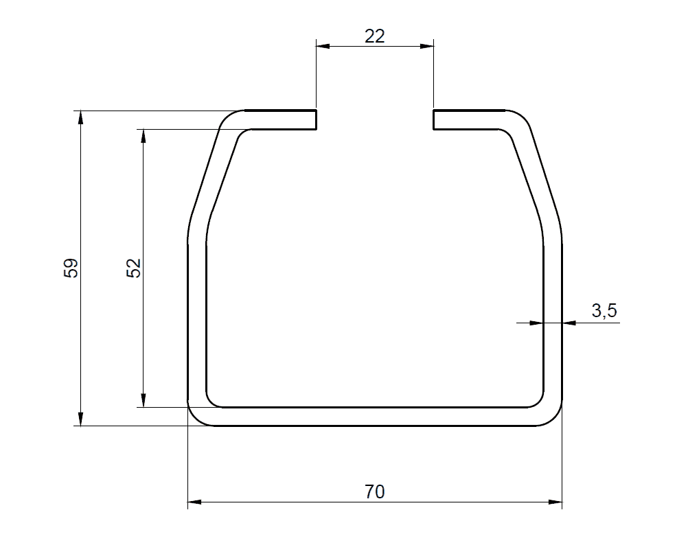 Балка изготовлена из Стали25, толщина стенок 3,5мм. Размер мм. 70×60×6000. Балка ровная, в пределах указанных нагрузок не деформируется и не изменяет профиль на всем протяжении срока эксплуатации. Профиль балки обеспечивает центрирование полотна ворот на роликах, благодаря чему ворота скользят ровно и плавно.